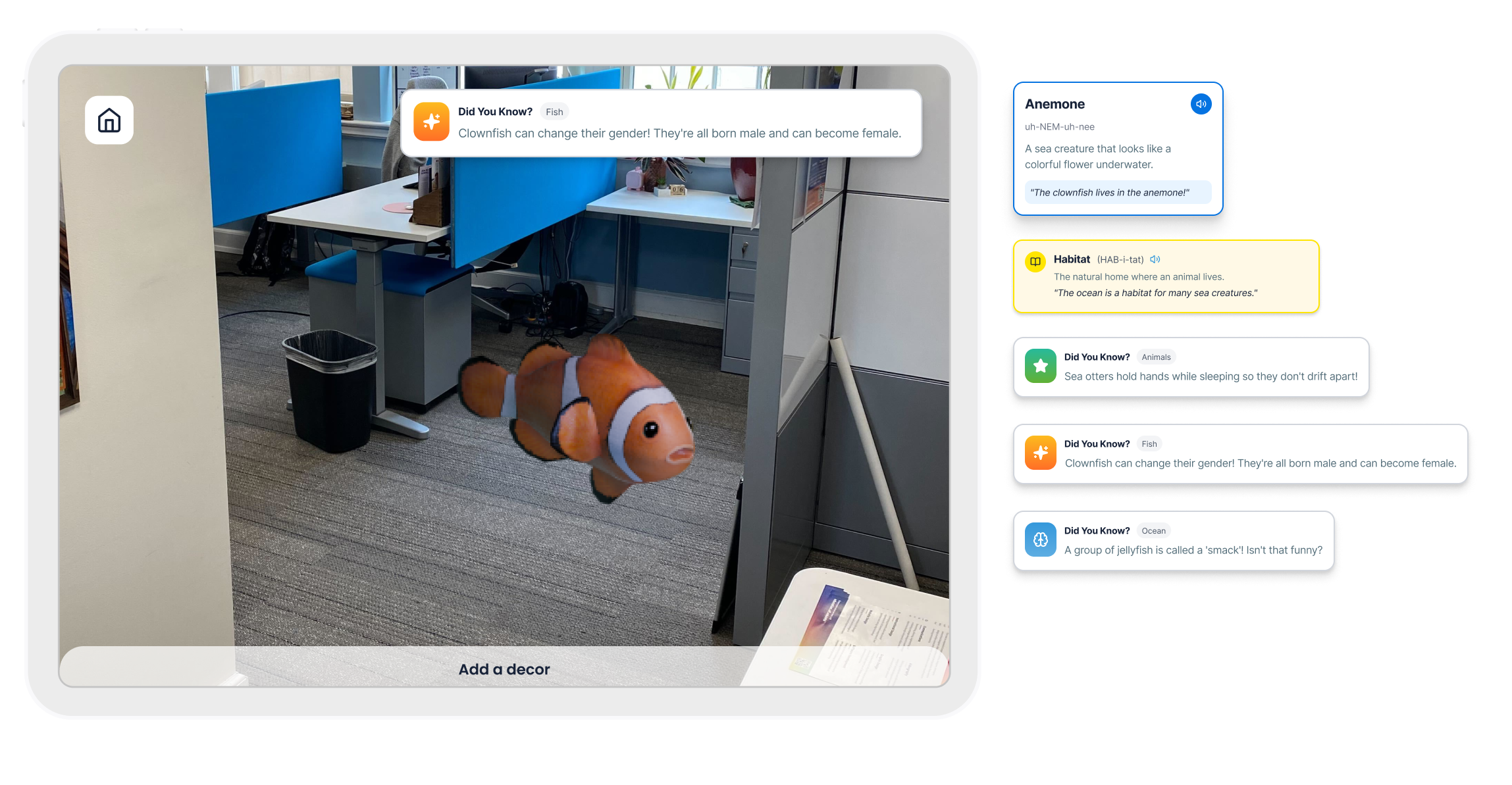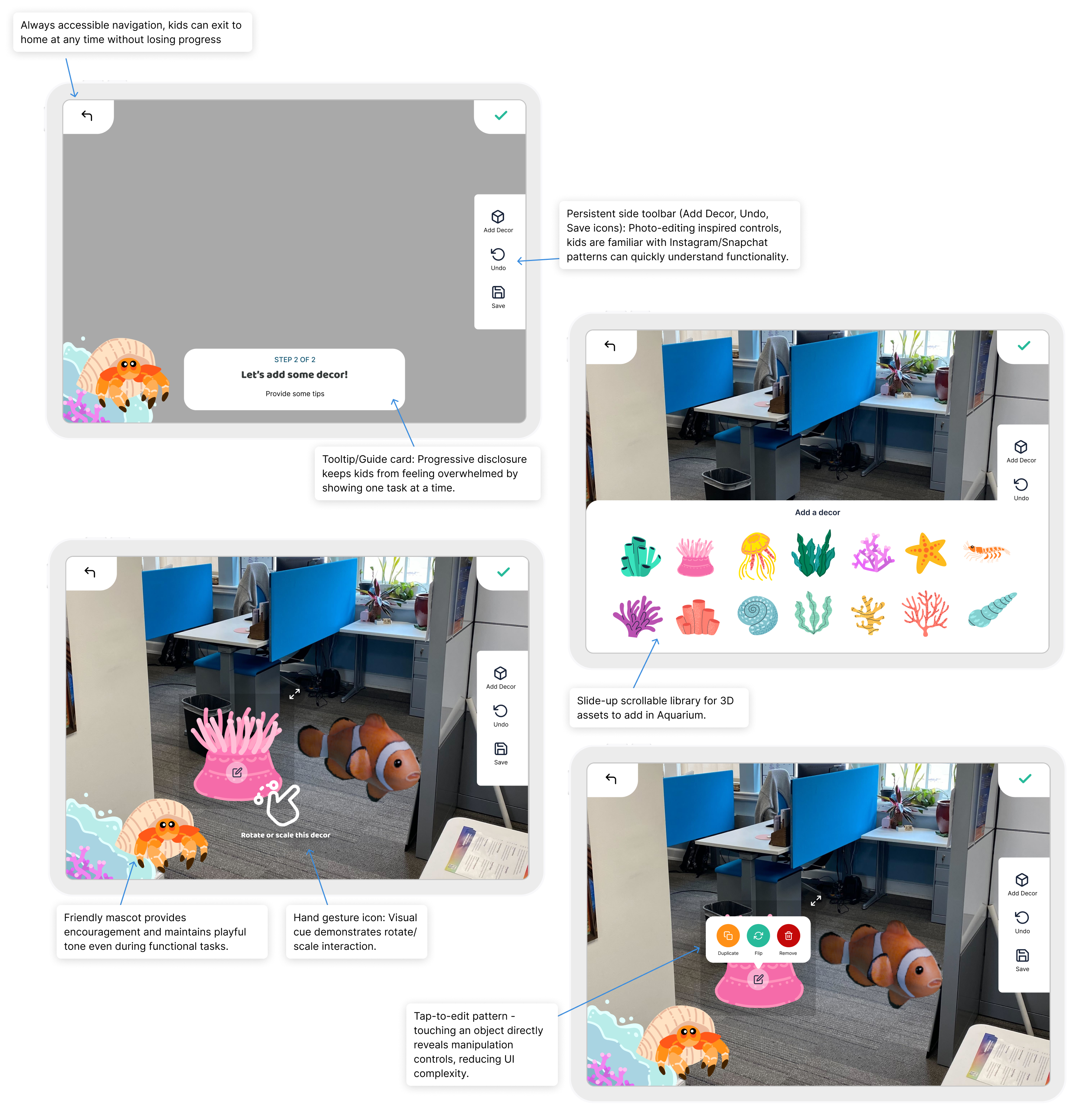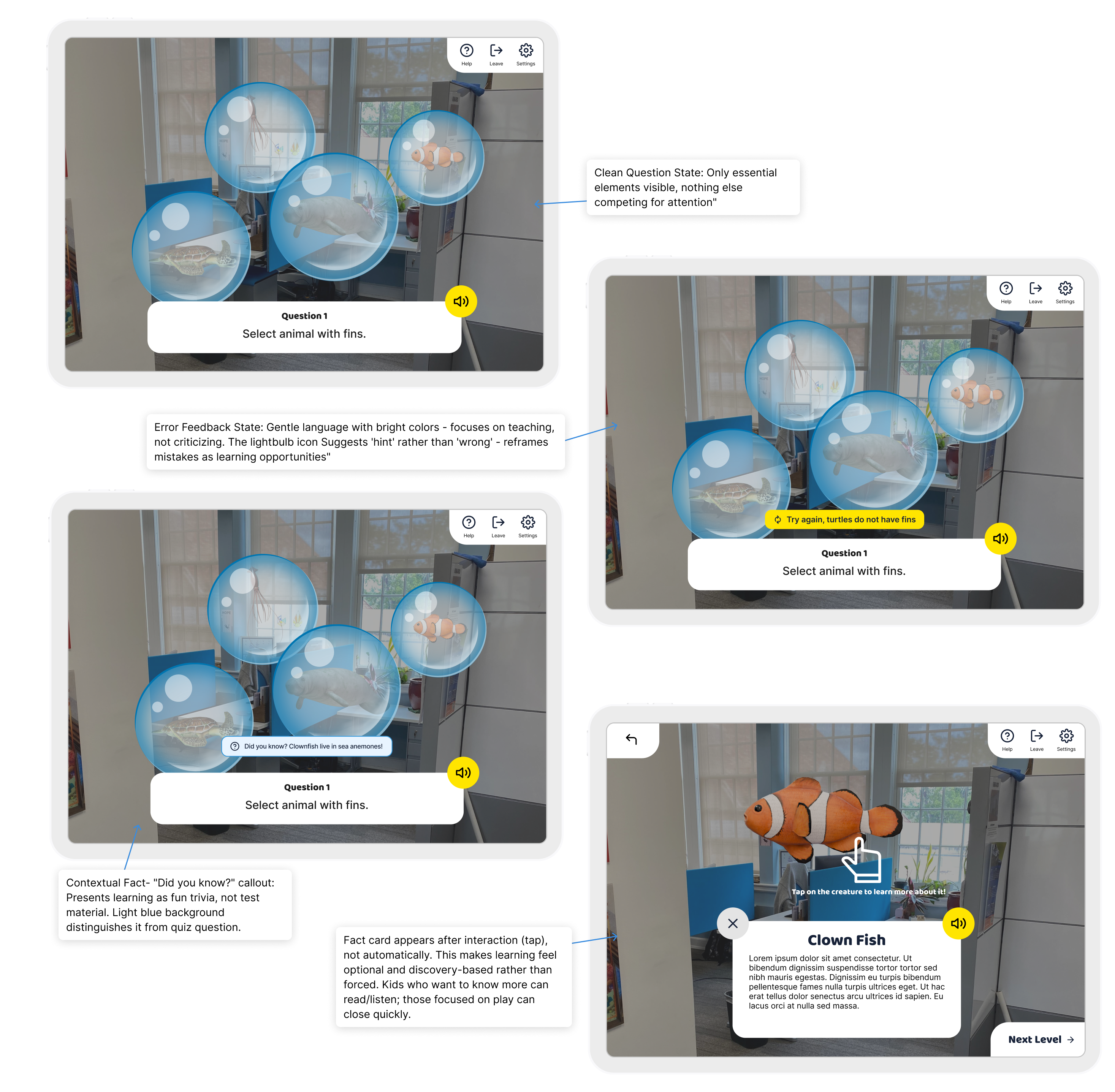 Stakeholders noted that while kids loved the AR interactions, we needed to emphasize educational content more prominently to meet learning objectives.