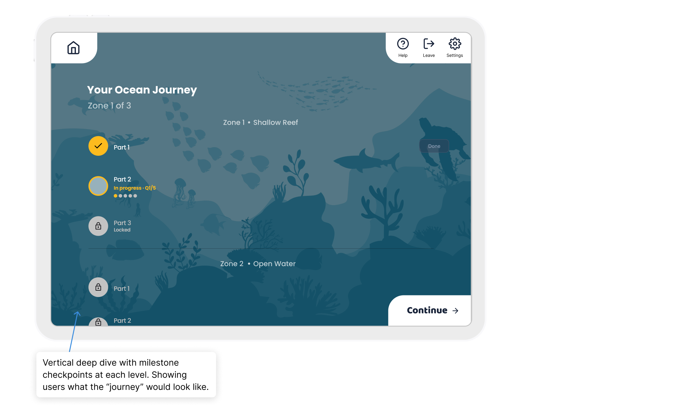 Focus groups revealed that the quiz activity felt too long. Kids would lose focus or exit mid-experience, thinking they'd never finish.